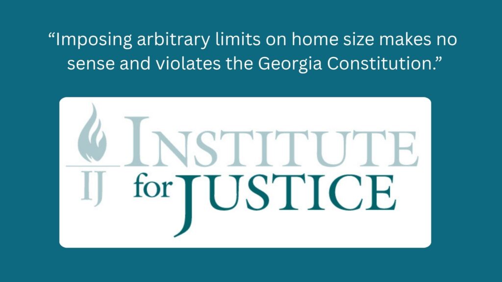 “Small homes offer flexibility for people who might not be able to afford larger homes or who just prefer to downsize,” said IJ Senior Attorney Dan Alban. “Imposing arbitrary limits on home size makes no sense and violates the Georgia Constitution.”